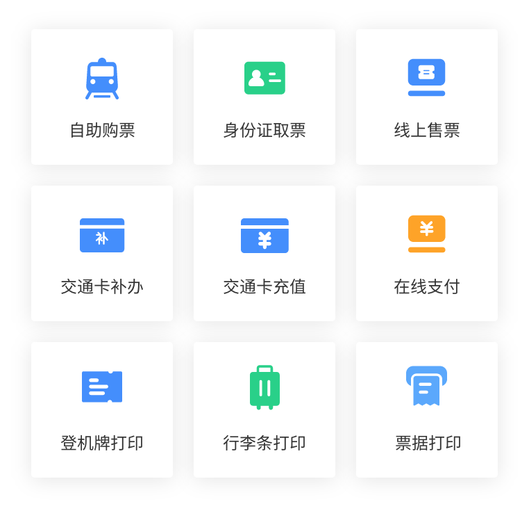 具備二代身份證識別、車票打印、銀行卡支付、微信支付、支付寶支付、發卡等功能。