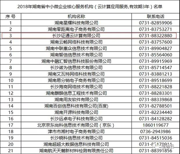 2018年03月06日,湖南省經濟和信息化委員會(經信委)組織發布了《湖南省中小企業“上云”行動云計算產品推薦目錄(2018)》和湖南省中小微企業核心服務機構目錄,證通云七大計算產品、云計算應用服務赫然在冊。